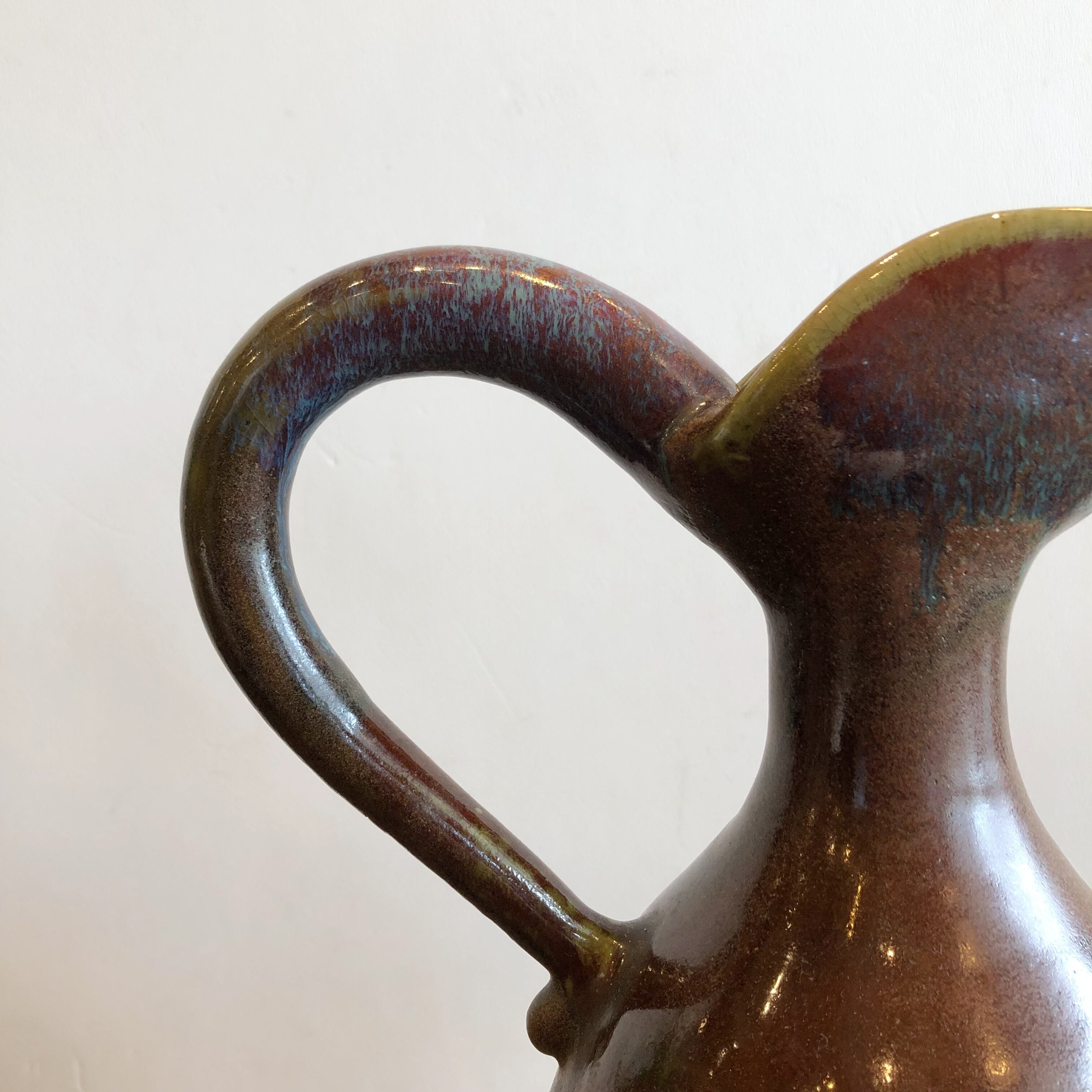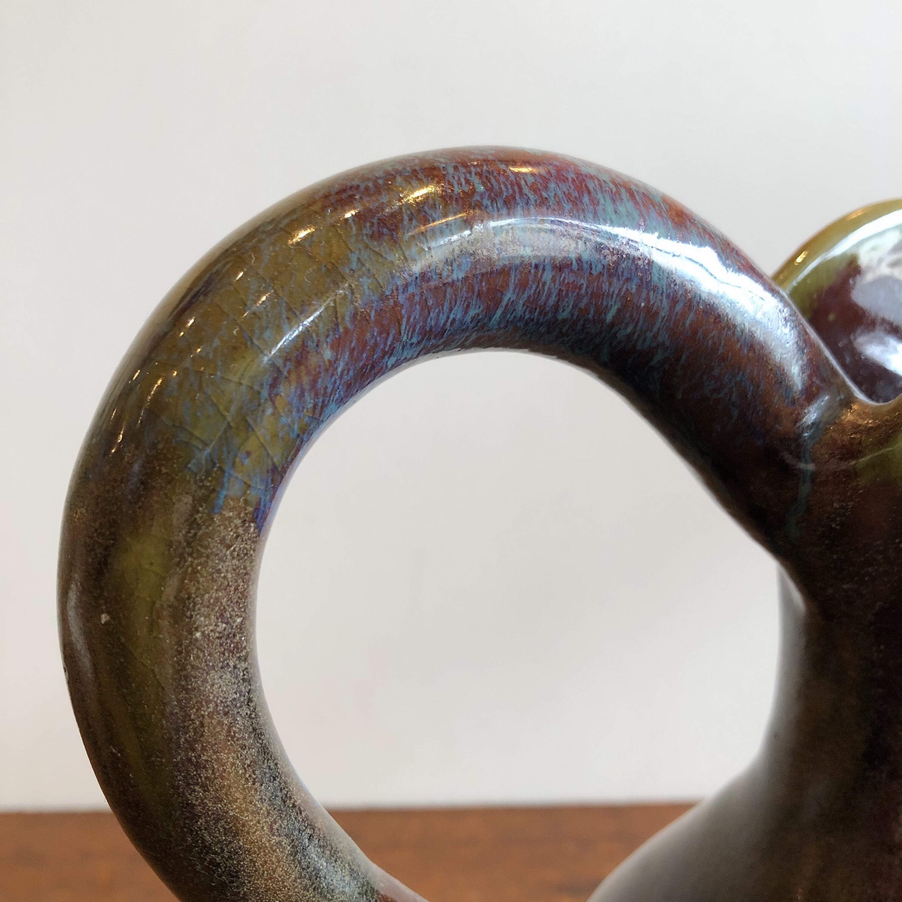 大きな取っ手のデザインが個性的なヴィンテージフラワーベース。