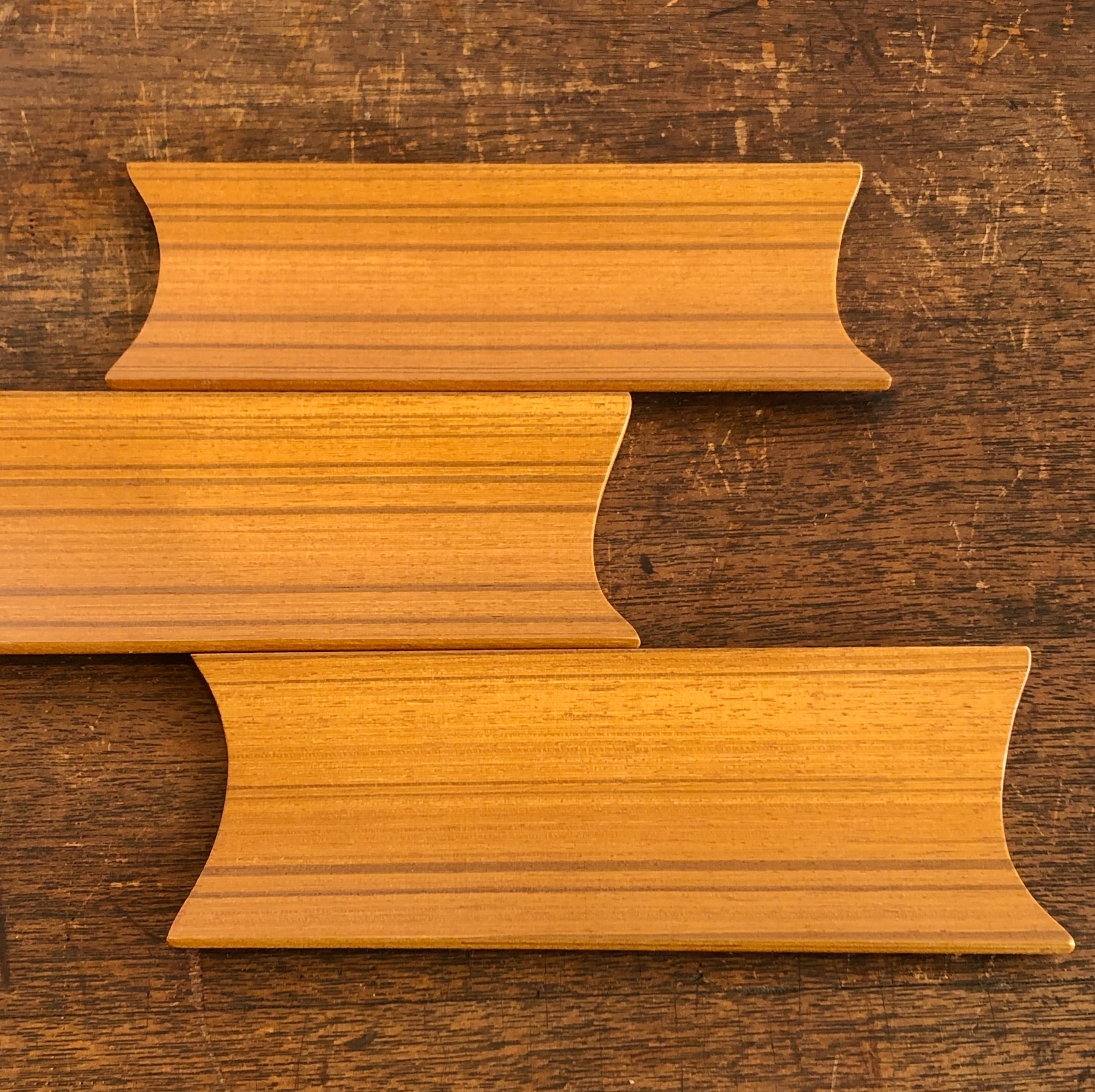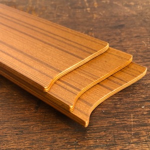 チークの木目を模した突板の美しさと洗練されたデザインのミニトレイはインテリア好きな方にも人気のアイテムです。