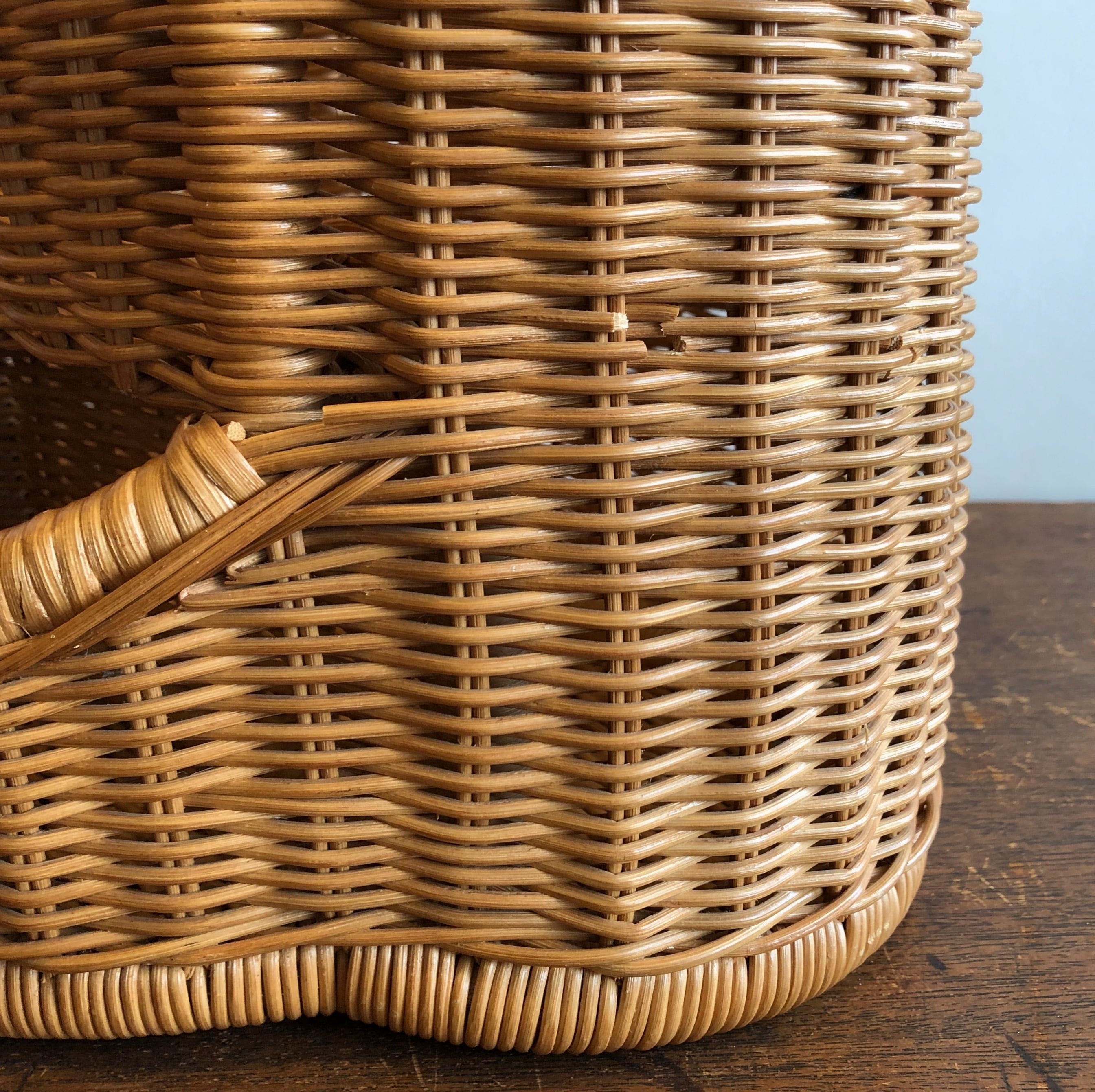 古いもののため、多少の擦れやラタンの折れ箇所など見られますが、しっかりとした作りで実用には問題ない状態です。古いものとご理解の上、お買い求めください。