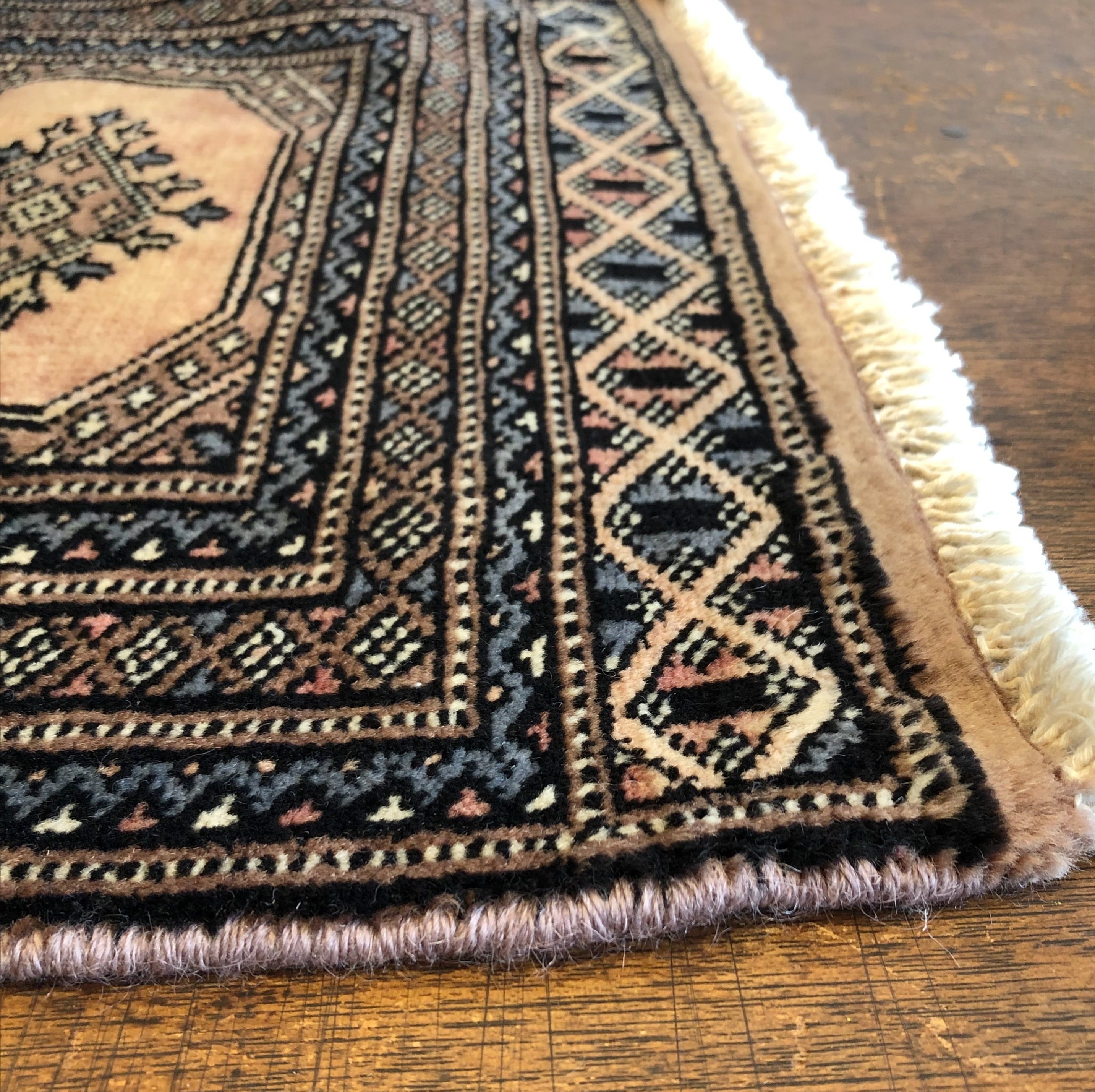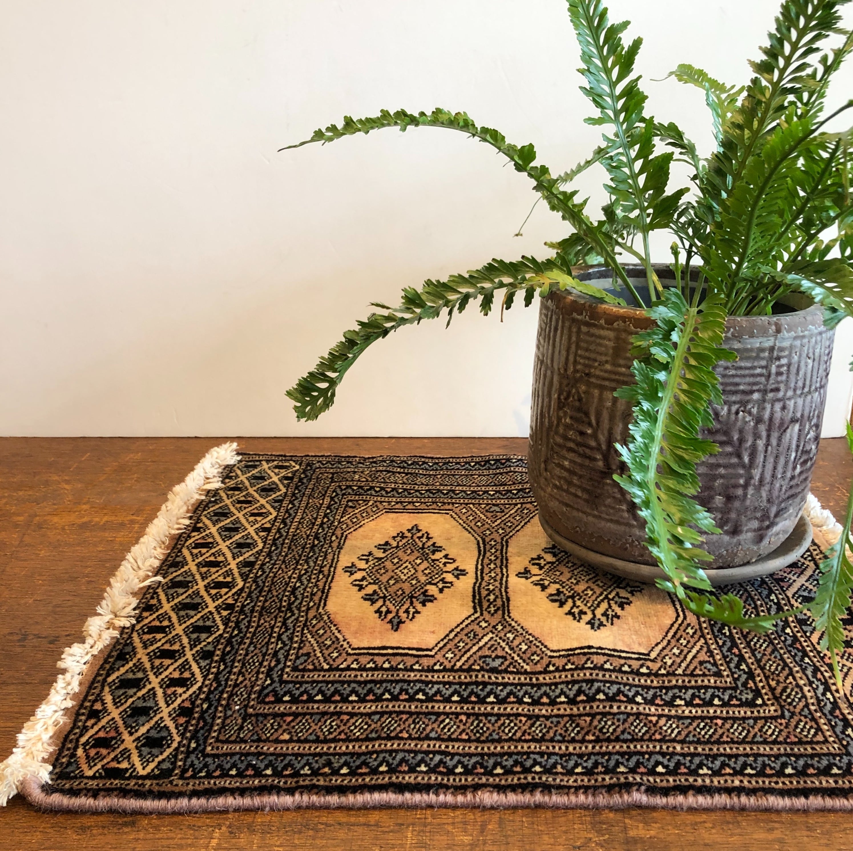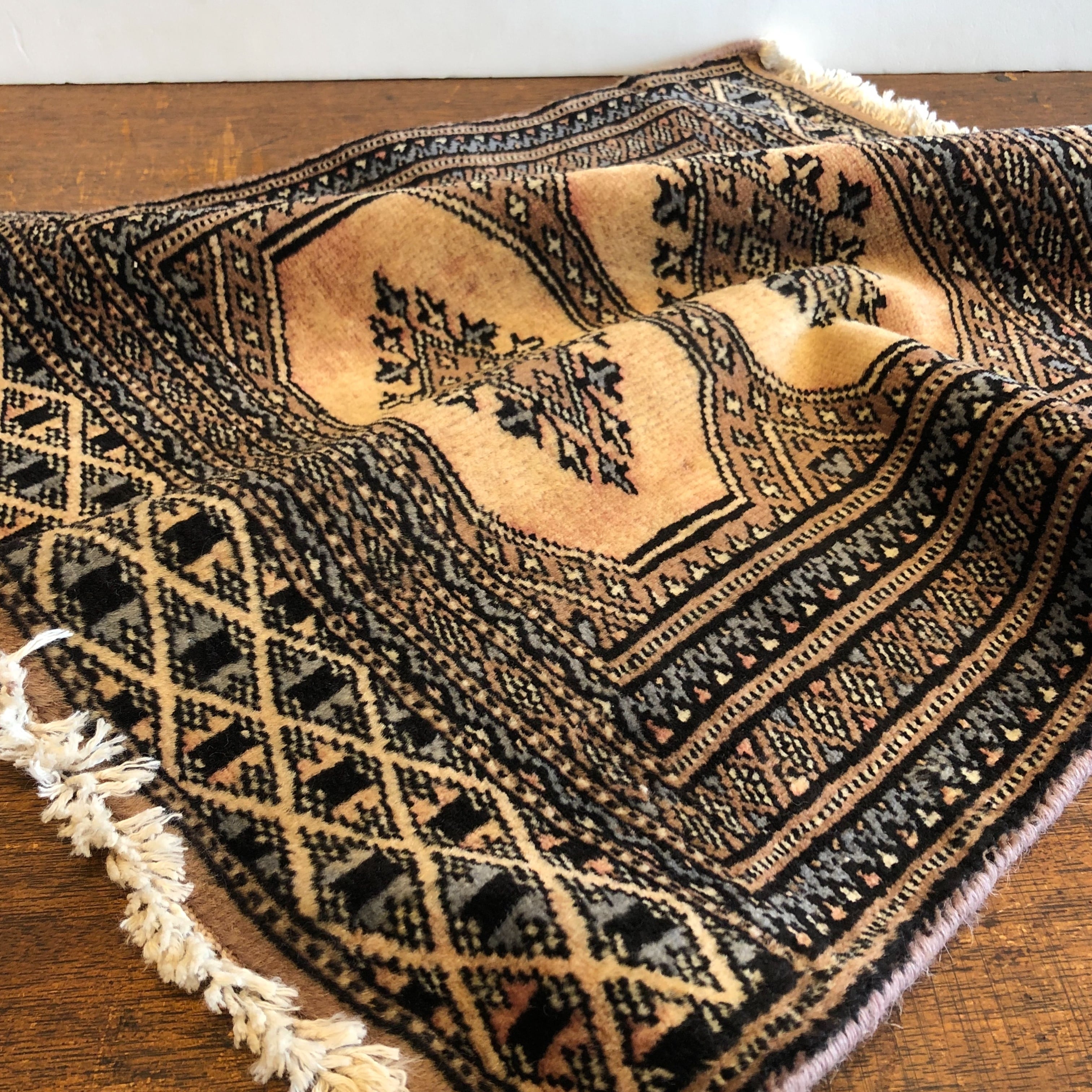 ベージュ系の落ち着いた色合いのヴィンテージトライバルラグ。