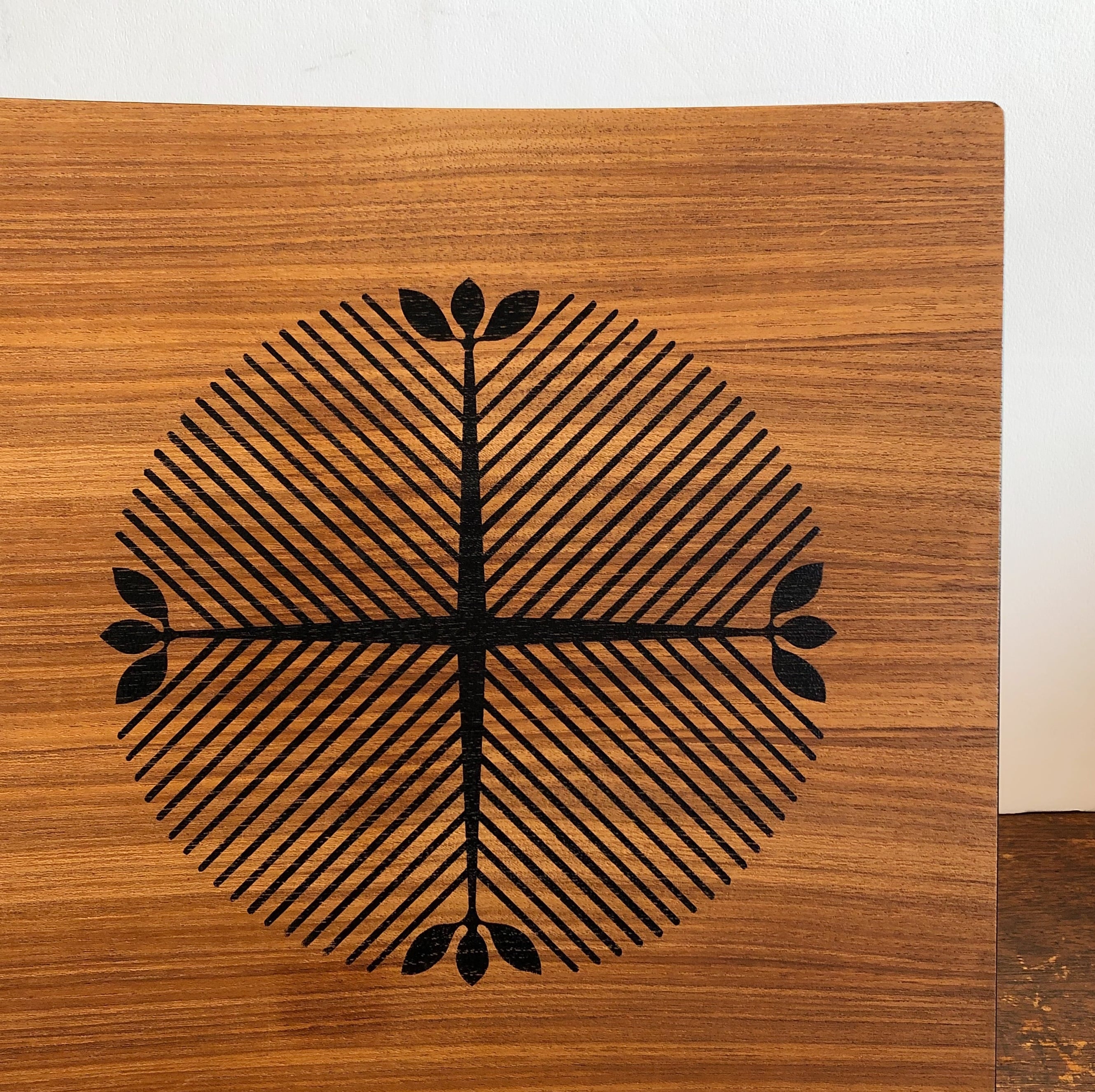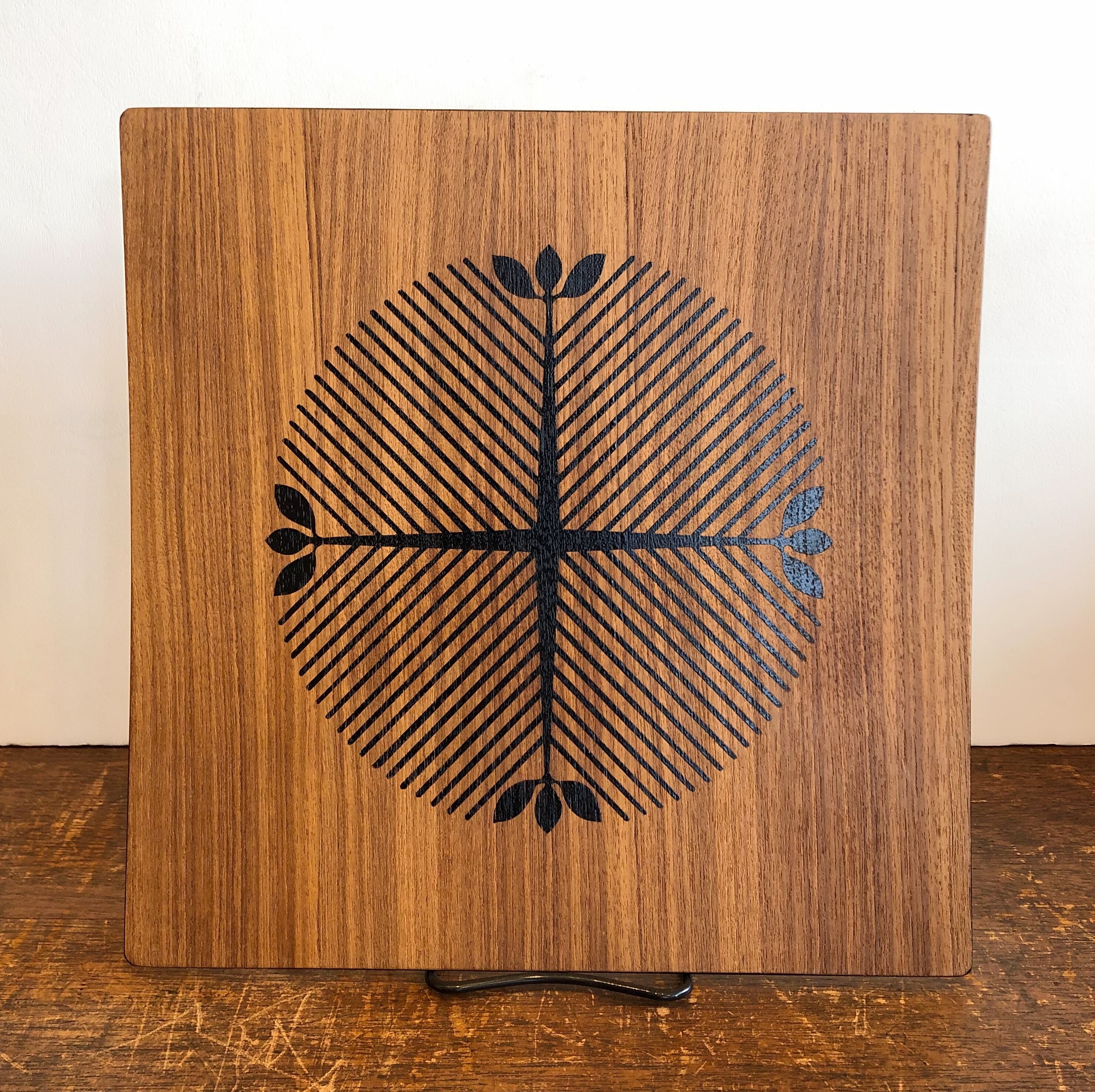 木がデフォルメされたようなイラストが目を引くプライウッドトレイ。