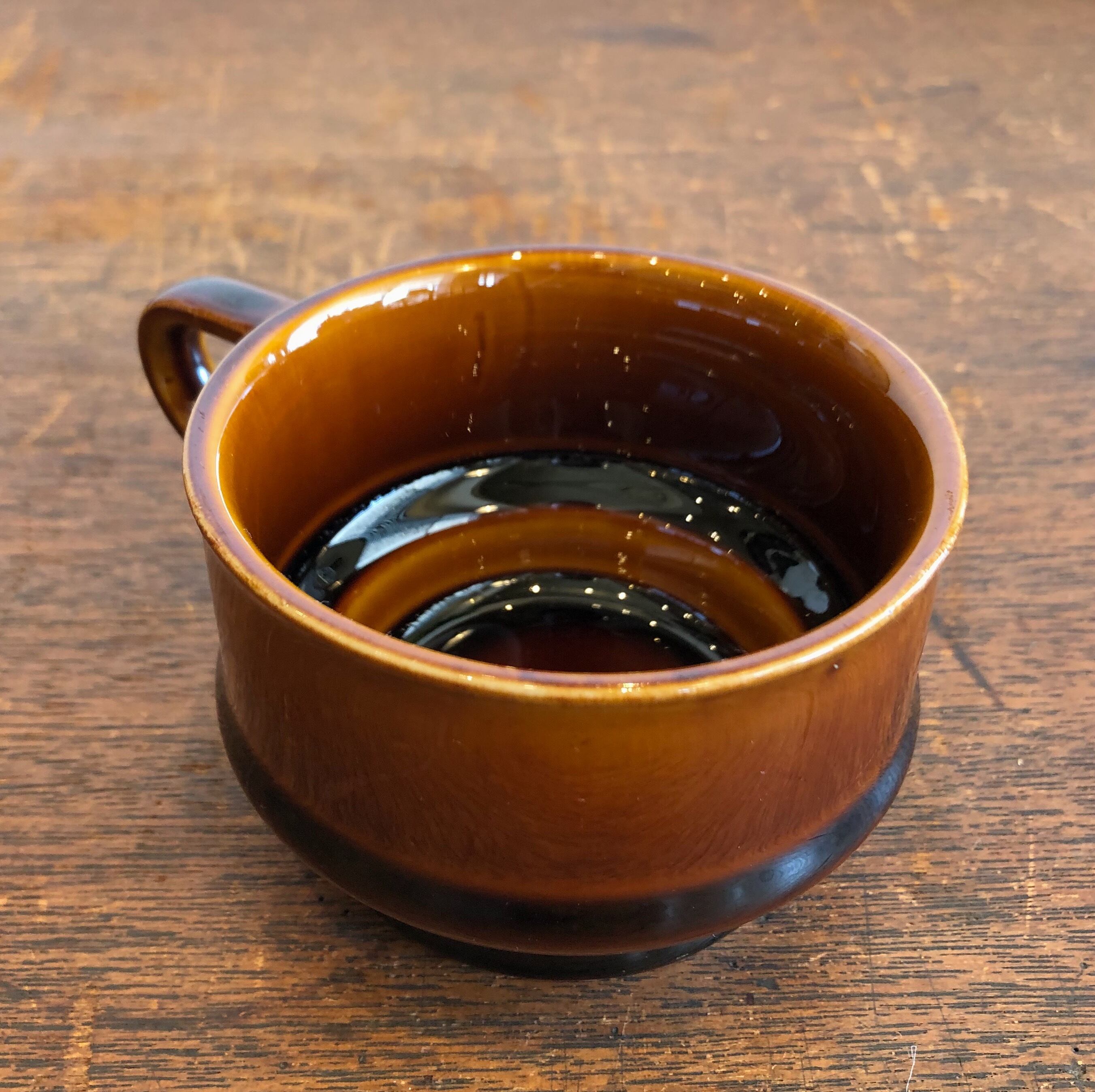 艶のある飴色釉薬が魅力的なコーヒーカップ。