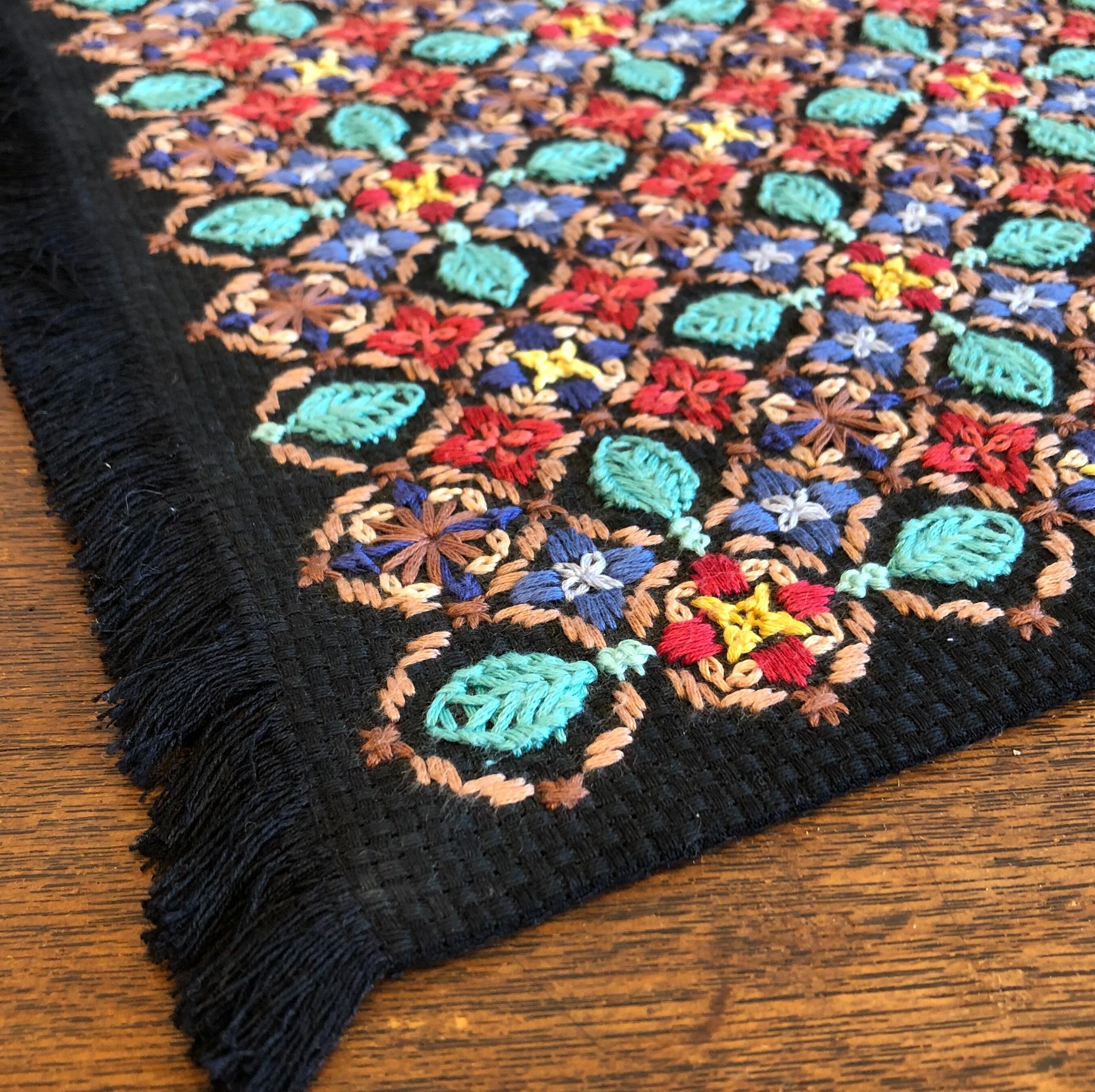 カラフルな糸で美しく刺繍された古い刺繍布。