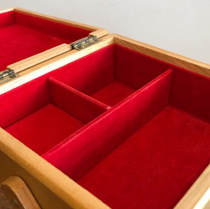 古いもののため、多少の擦れ感や細かな傷など見られます。赤い内布に経年による汚れや針山部分に針穴などございます。お手入れ済みですので実用には問題ない状態です。