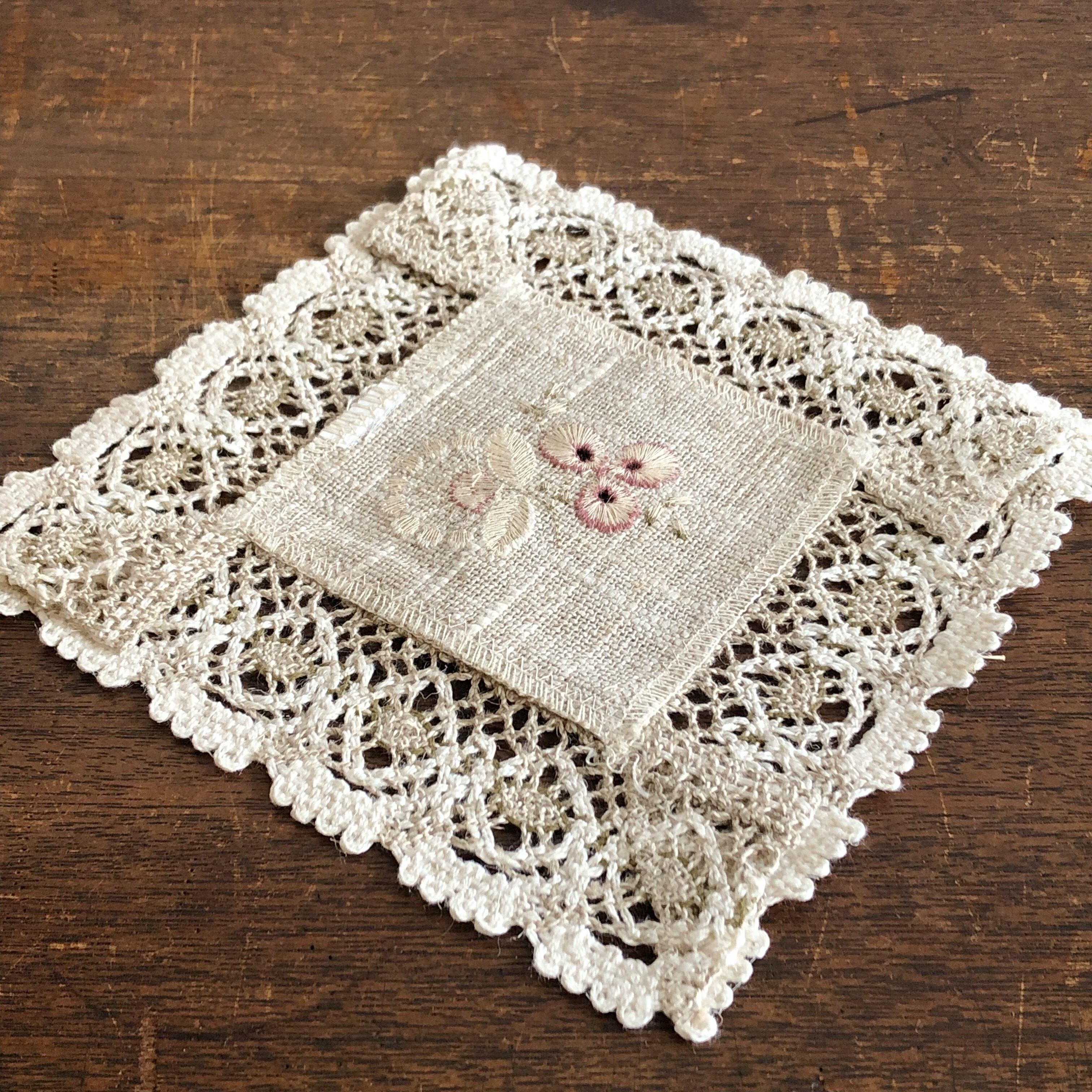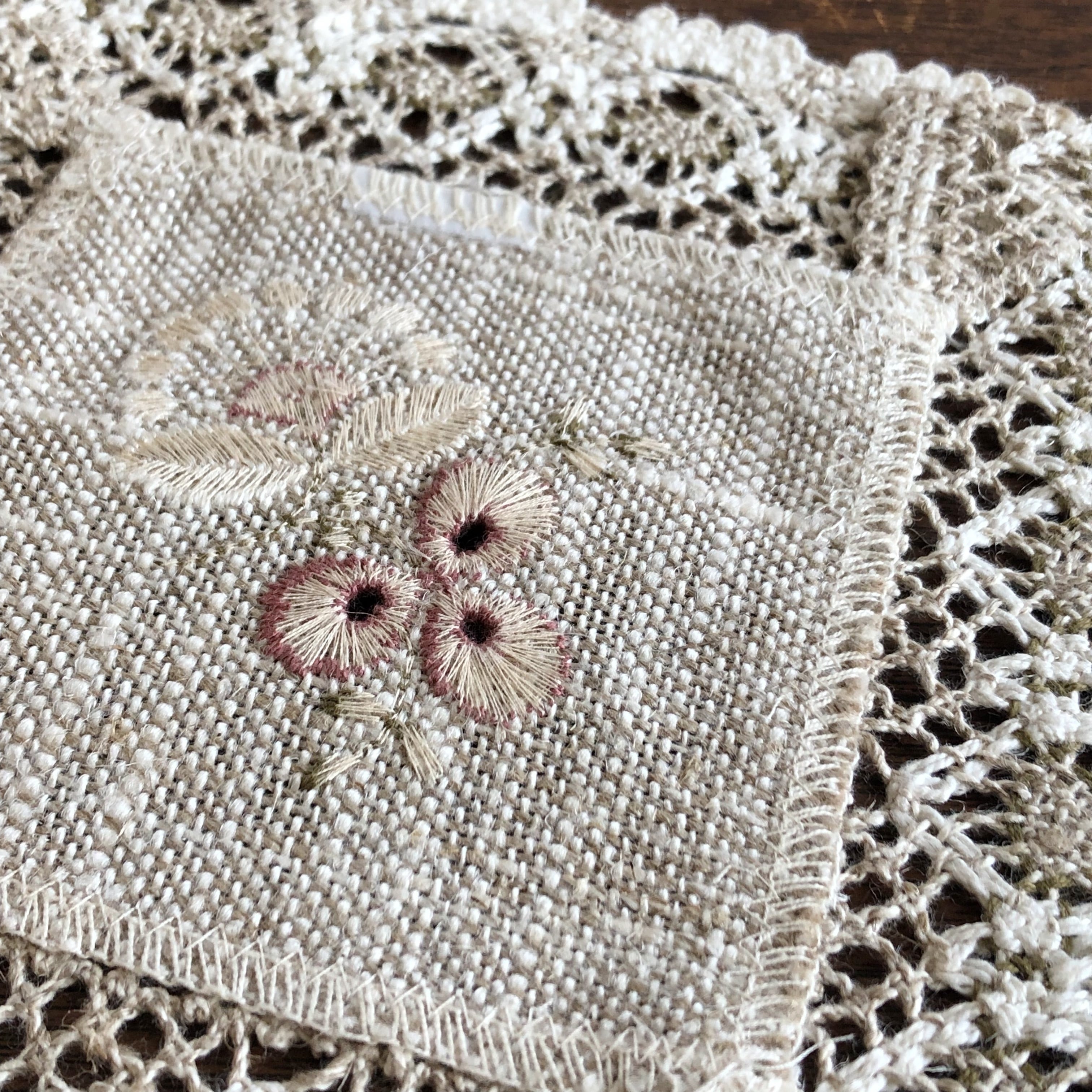 リネンのナチュラルな風合いの刺繍が美しい一点です。
