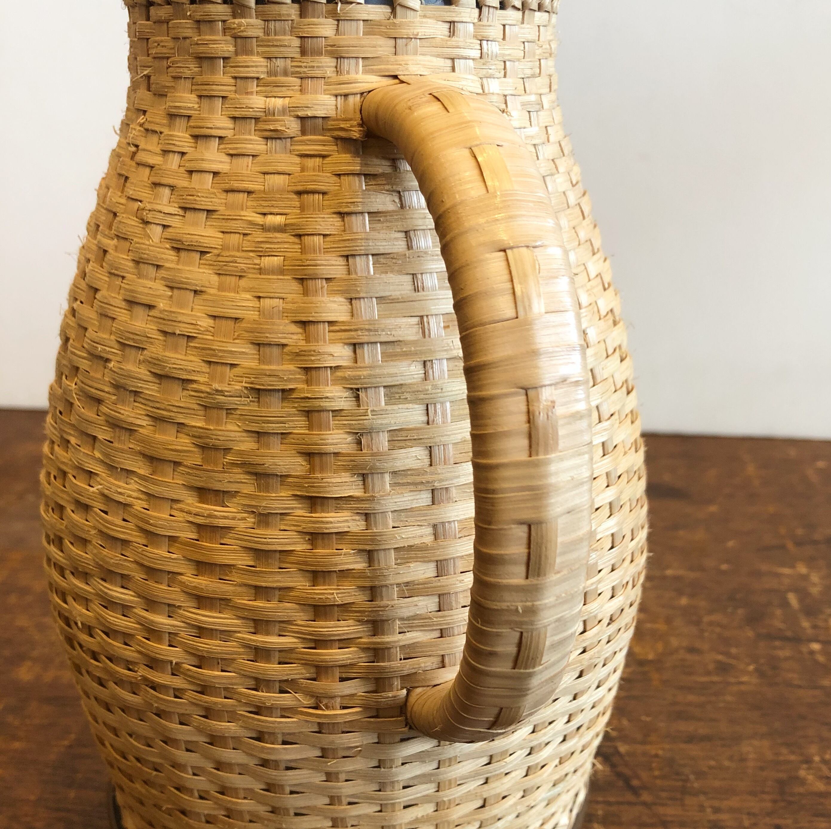 蓋には木を使用し、本体部分は藤編みで美しく覆われています。