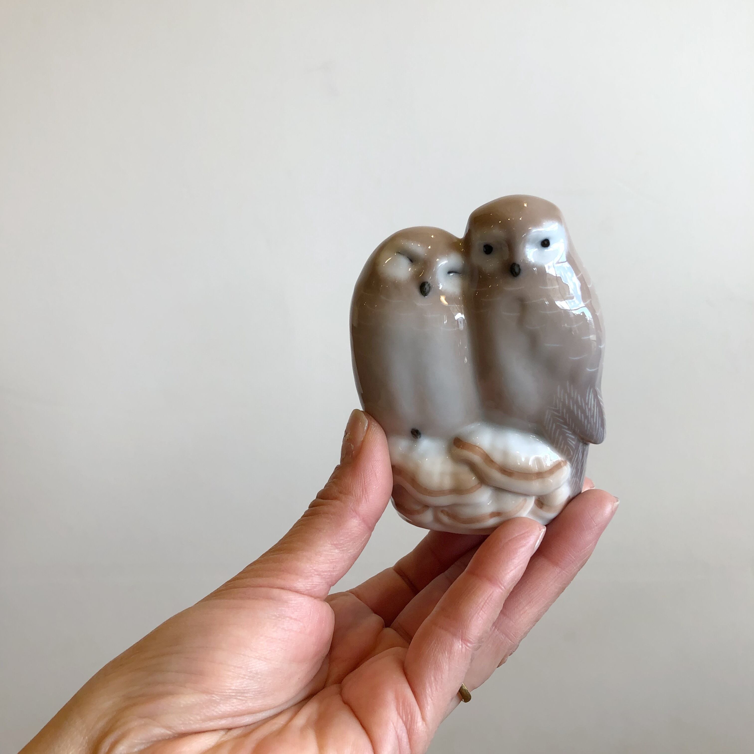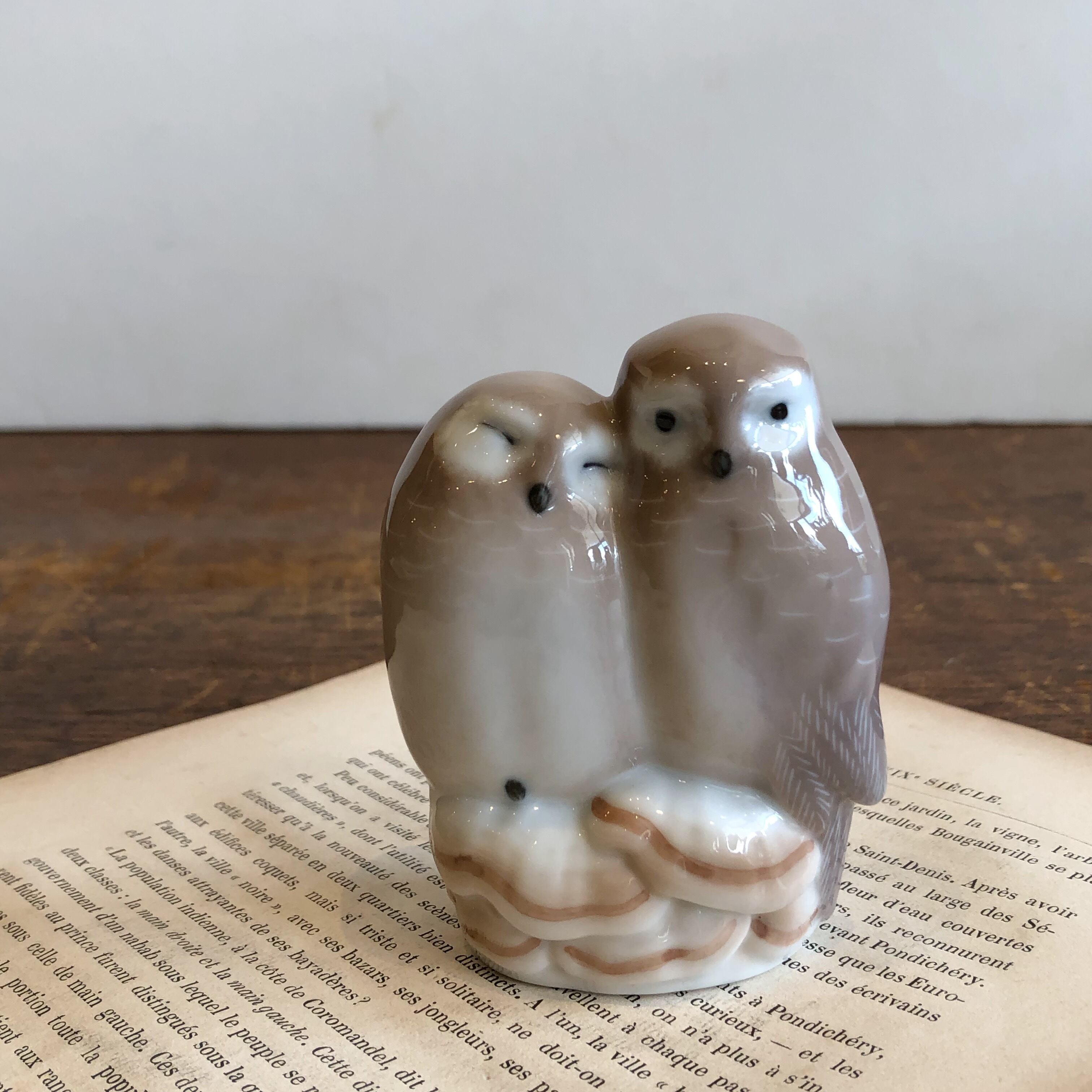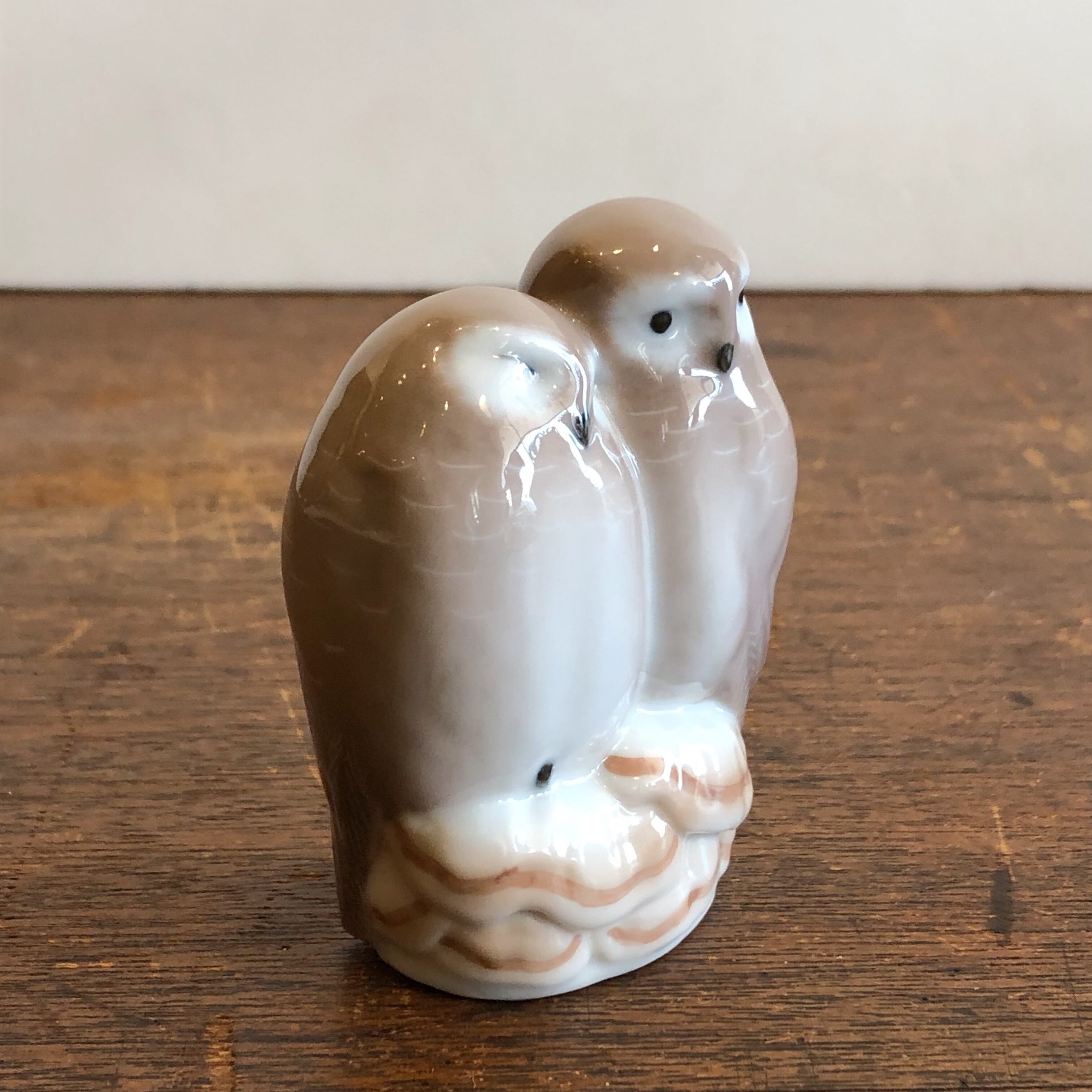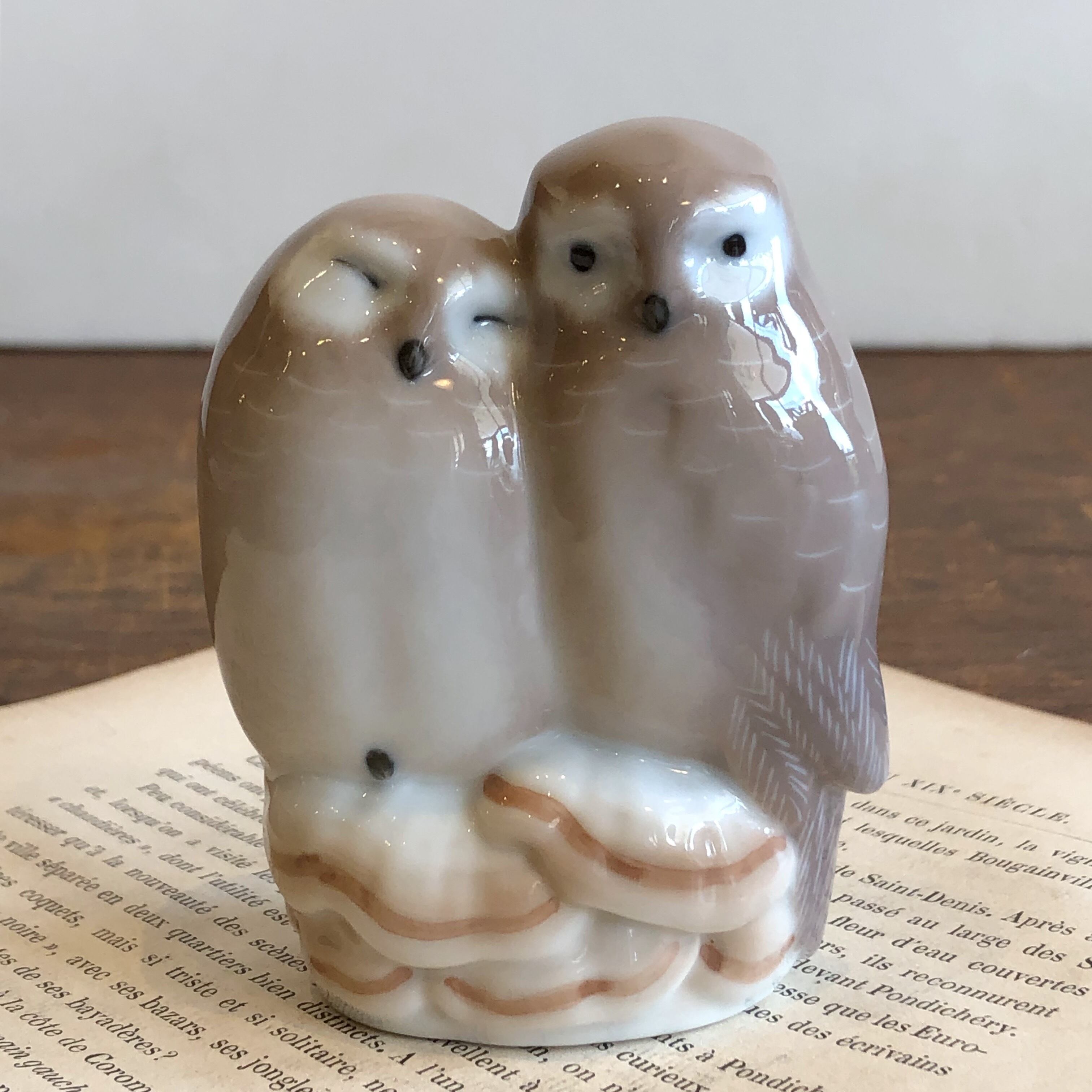 仲良く寄り添う姿が微笑ましい、つがいのフクロウのフィギュリンは2003年に発売されたものです。