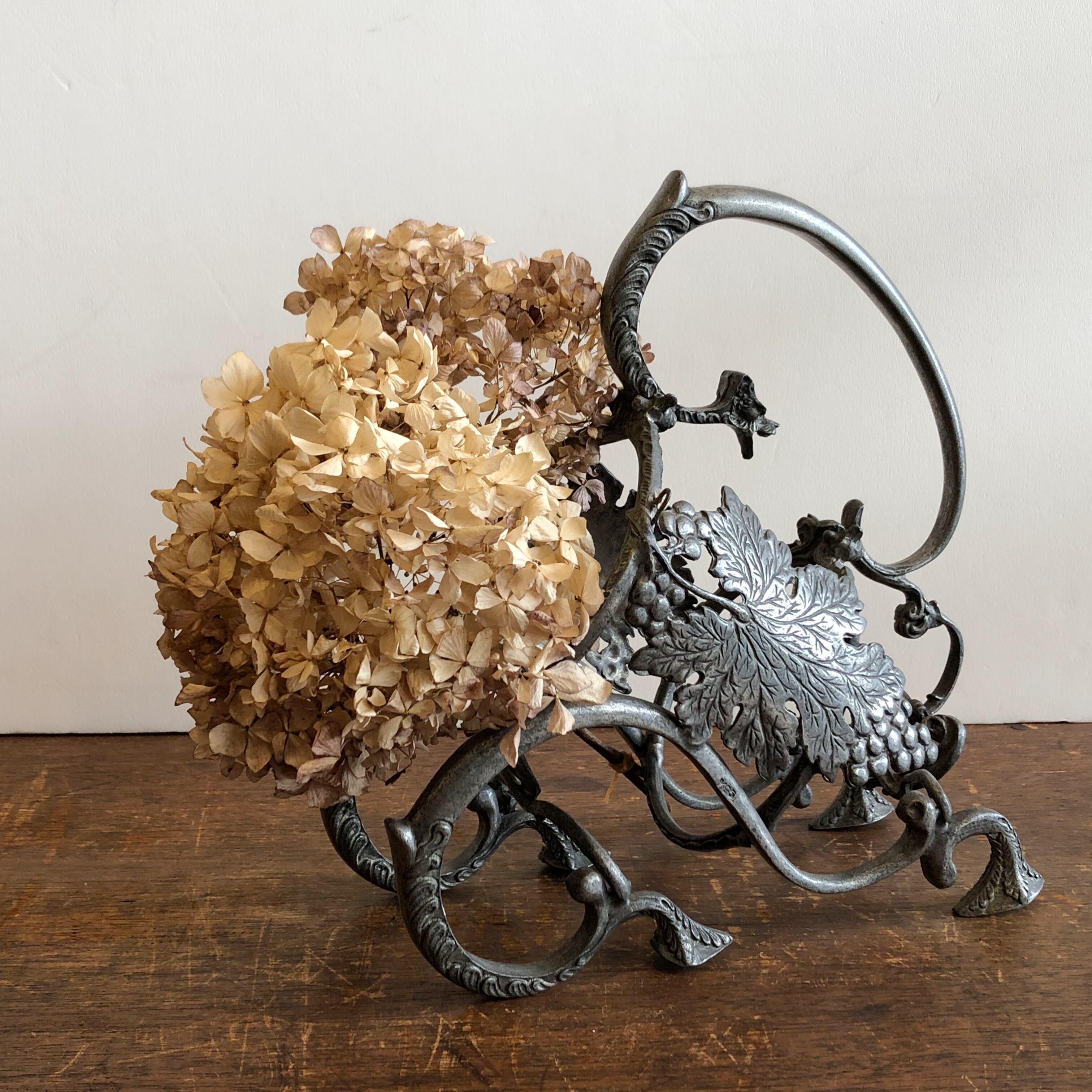 ピューターは曲がりやすい金属です。脚や葡萄モチーフ部分は曲がりやすいデザインのため、お手入れやご使用の際はご注意ください。